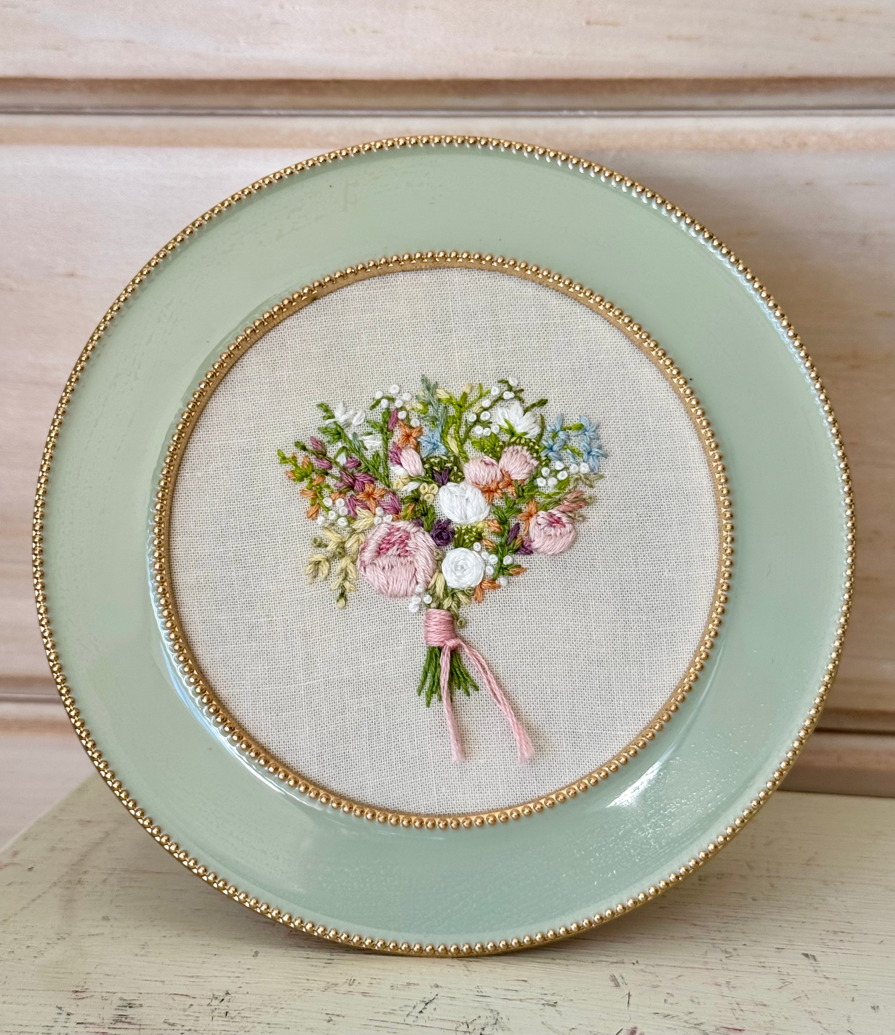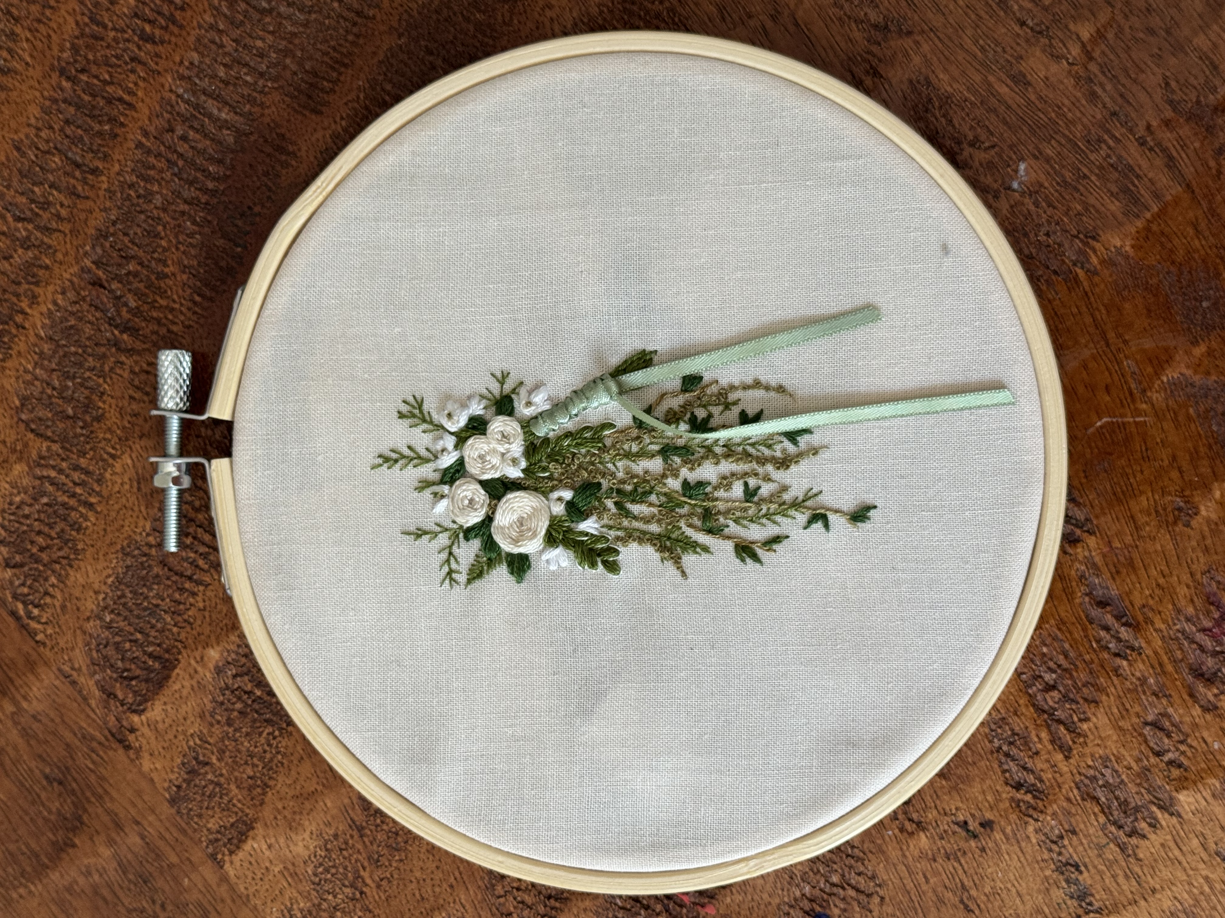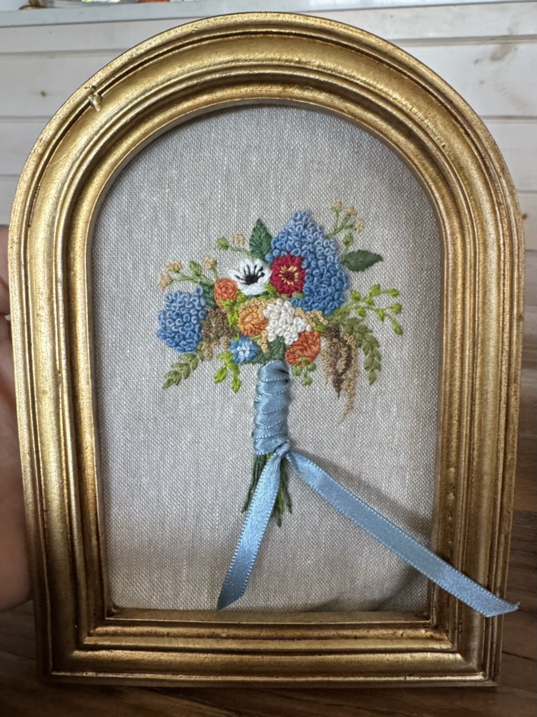 Welcome to the "upstairs" business, Threads and Ties. This is my personal creative space for sewing, embroidery, and jewelry design. I specialize in turning memories into art—from preserving bridal bouquets in thread to embellishing unique baby carriers.